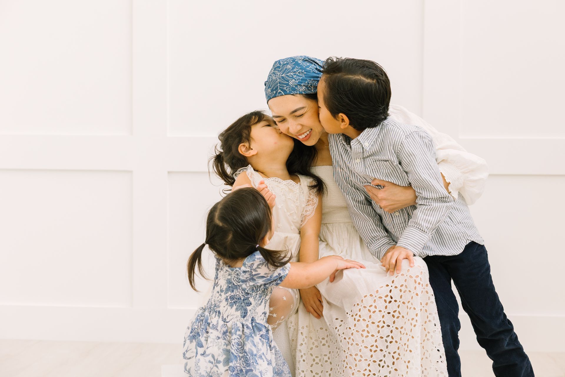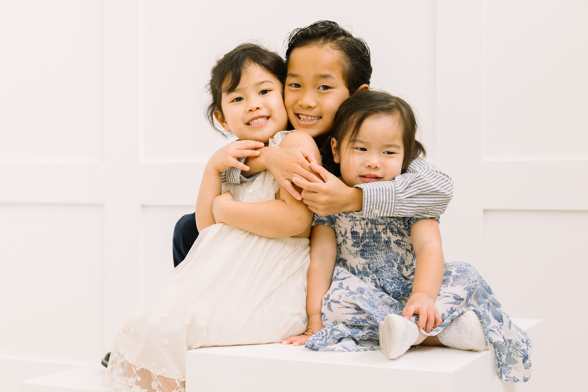 We have a 6 roller electric backdrop system that has 6 different color seamless backdrops. Our studio also boasts vaulted skylit ceilings with light floors and bright walls so that natural light coming in bounces beautifully and evenly. Not a single artificial light was used during that session.